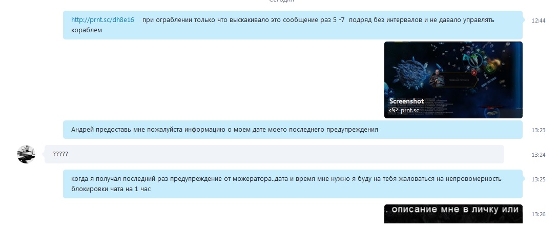 Прошу что бы мне дали ответ разработчики или член ВСА отвественный за рассмотрение жалоб от игроков, а не модераторы игры.