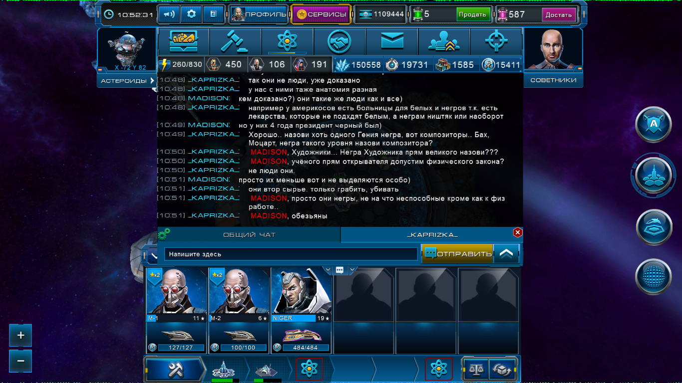 Во всём цивилизованном интернете, любые сообщения унижающие людей по расовым или национальным признакам наказываются максимально строго. Данная игра не исключение и за такого рода высказывания можно получить и блок аккаунта.