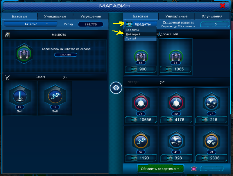 Покупку кристаллов можно делать в магазине. Для этого открываем магазин, выбираем вкладку дейтрий и покупаем кристаллы.