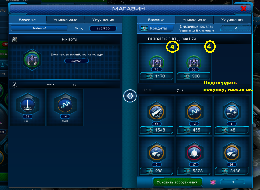 Миниботы - это хп корабля, его жизнь. Загрузка миниботов, выполняем щелчки в последовательности.