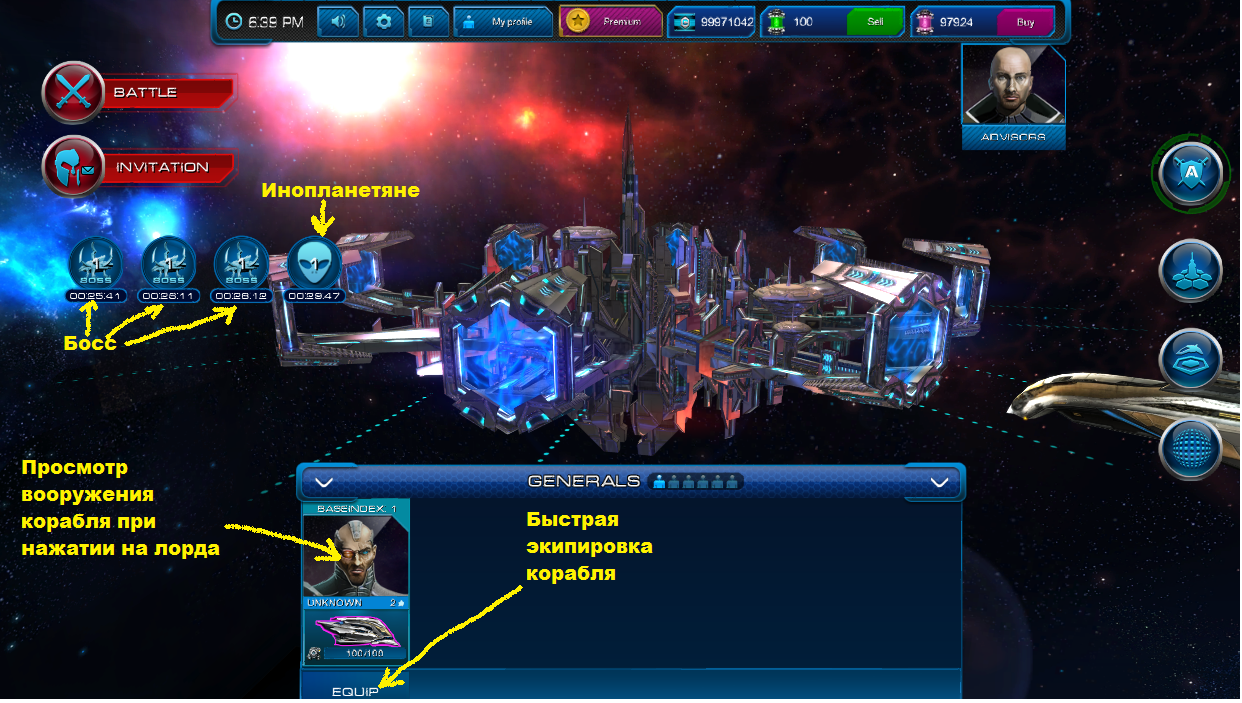 Так же Вы можете биться против босса и пришельцев, как сами так и с другими игроками. Они расположены ниже кнопки командного боя и присоединения.