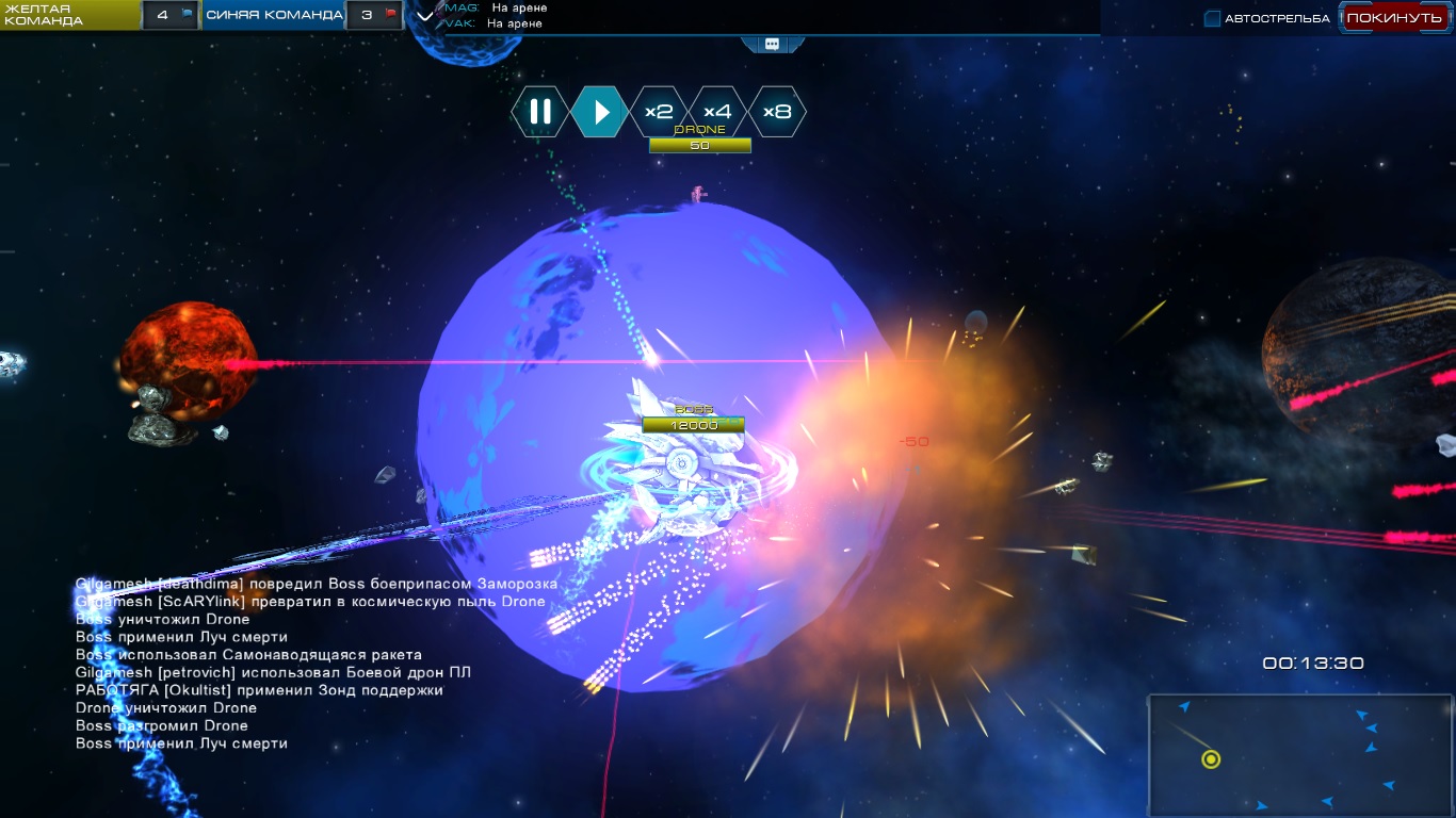 Некоторых из союзников может потрепать босс и поэтому настоятельно рекомендую восстанавливать уровень хп у них ремонтным лучем. Силовые преграды используем, когда к Вам направлены залпы от босса, а во время кд преград можно использовать истребители.